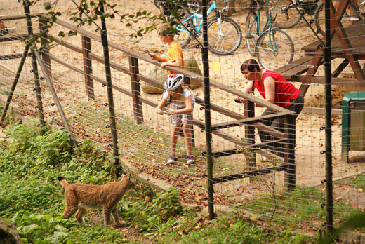 mit weiträumig angelegten Naturgehegen in malerischer Umgebung mit urwüchsigem Baumbestand. Hier sehen Sie u.a. Tag- und Nachtgreifvögel, Waschbären, Luchse, Marder, Wildkatzen und im Haustiergehege Ziegen, Schafe und Zwergkaninchen. Mittendrin befindet sich ein moderner Spielplatz für unsere Jüngsten mit rustikalen Geräten aus Naturmaterialien und ganz besonderem Charme, in dem die